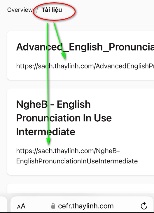 1. Bấm vào mục tài liệu ở trang cefr.thaylinh.com